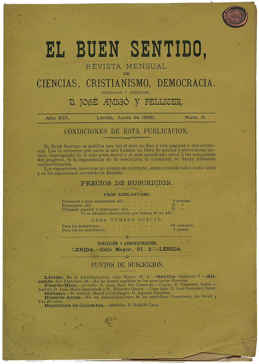 El Buen Sentido fue una revista espiritista fundada en Lérida en 1875 por José Amigó y Pellicer.