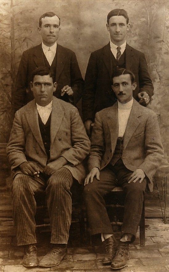 El sastre Pedro Armenta Vargas (sentado, primero por la derecha), tesorero y bibliotecario de la sociedad espiritista Amor y Progreso, fusilado en las tapias del cementerio el 8 de septiembre de 1936