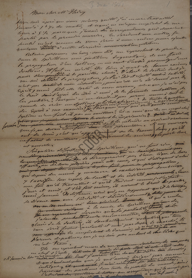 Carta manuscrita de Allan Kardec al Sr. Louis Jourdan