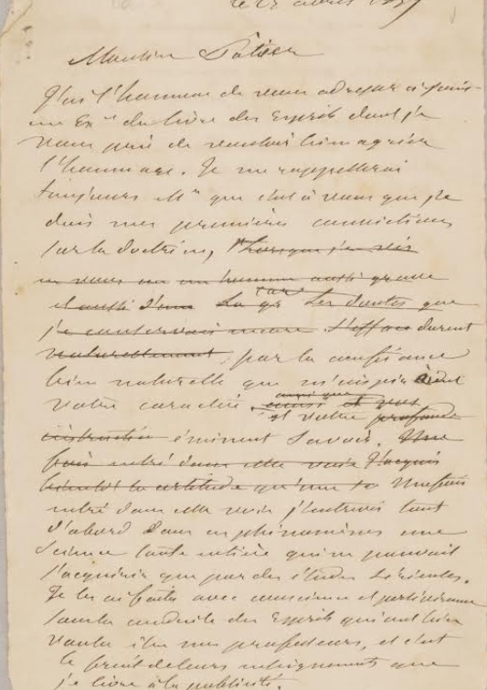Manuscrito original de Kardec al señor Pâtier
